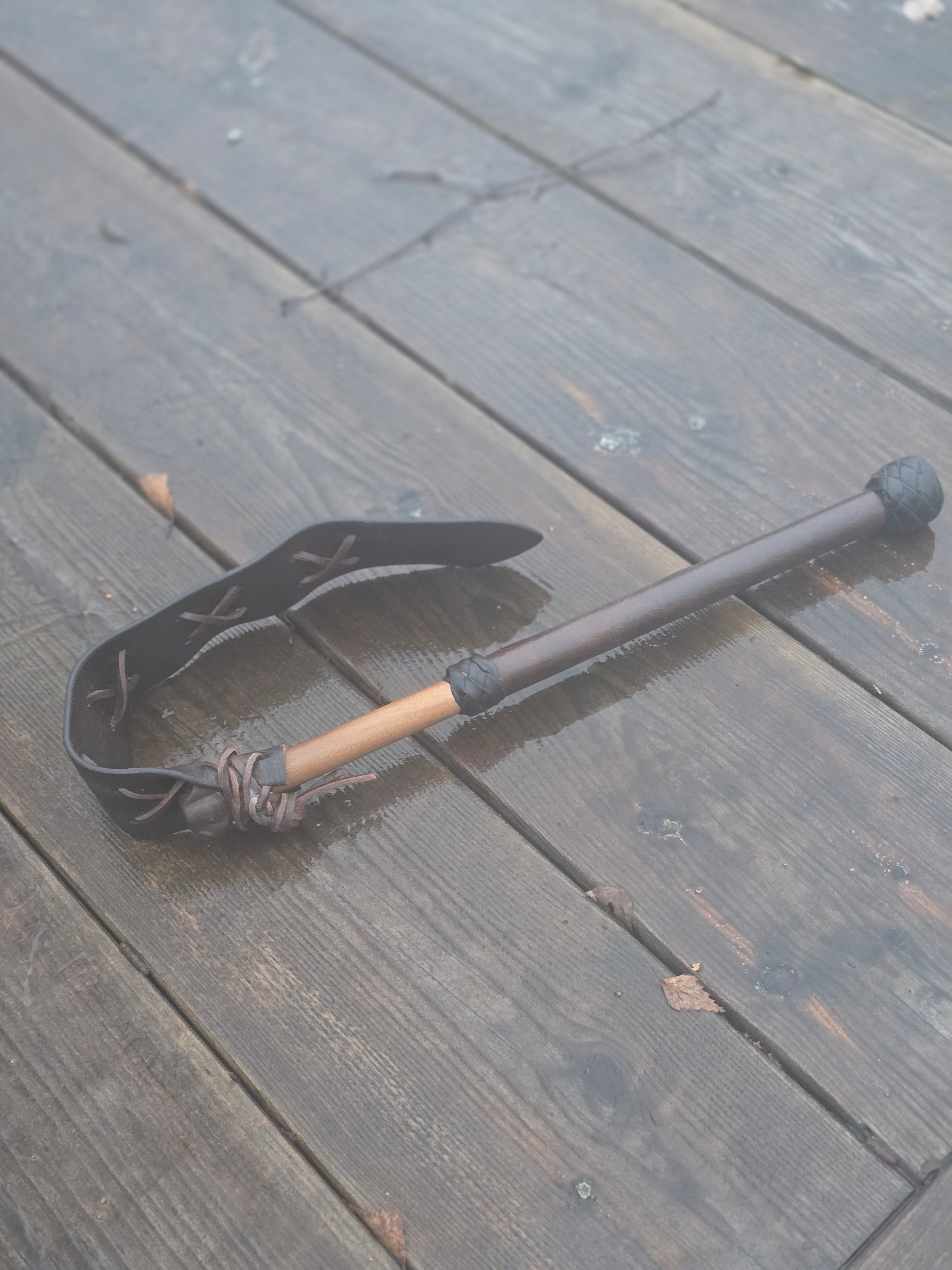 Material: handtag i trä/vegetabilgarvat koläder och svans i vegetabilgarvat koläder