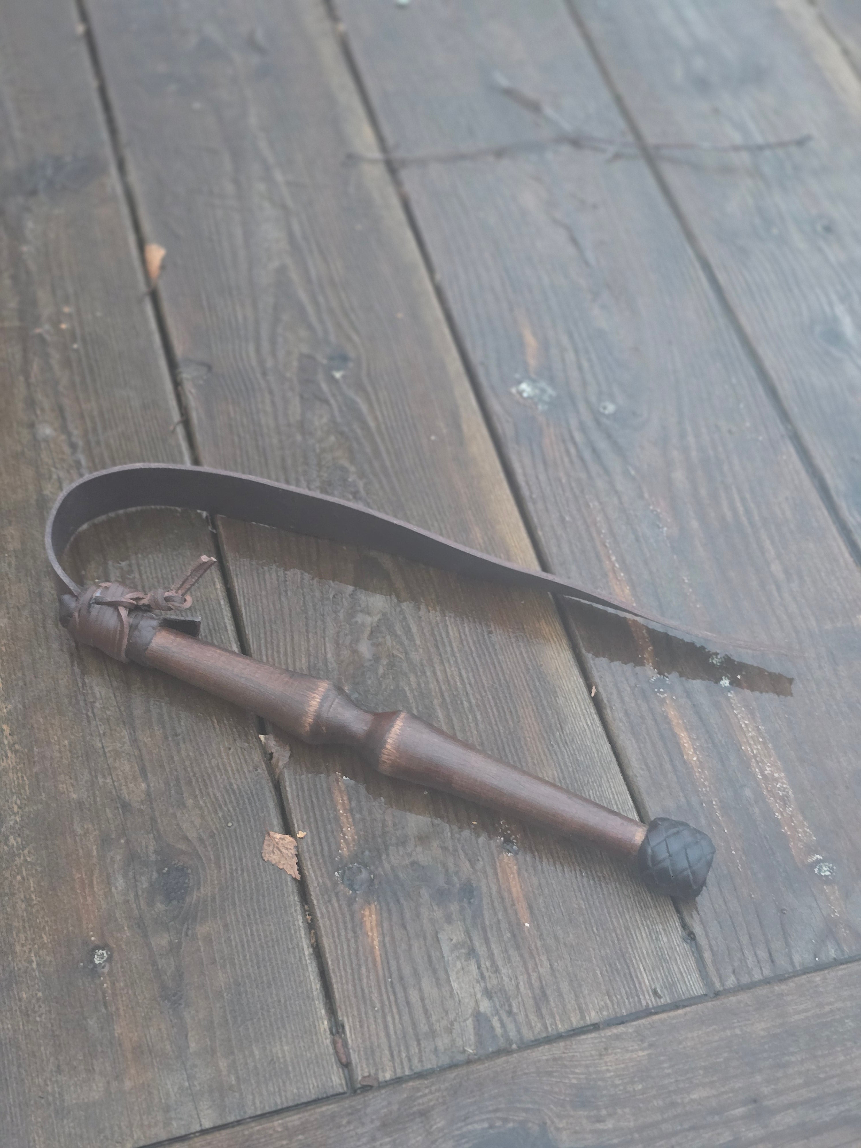 Material: handtag i trä/vegetabilgarvat koläder och svans i vegetabilgarvat koläder