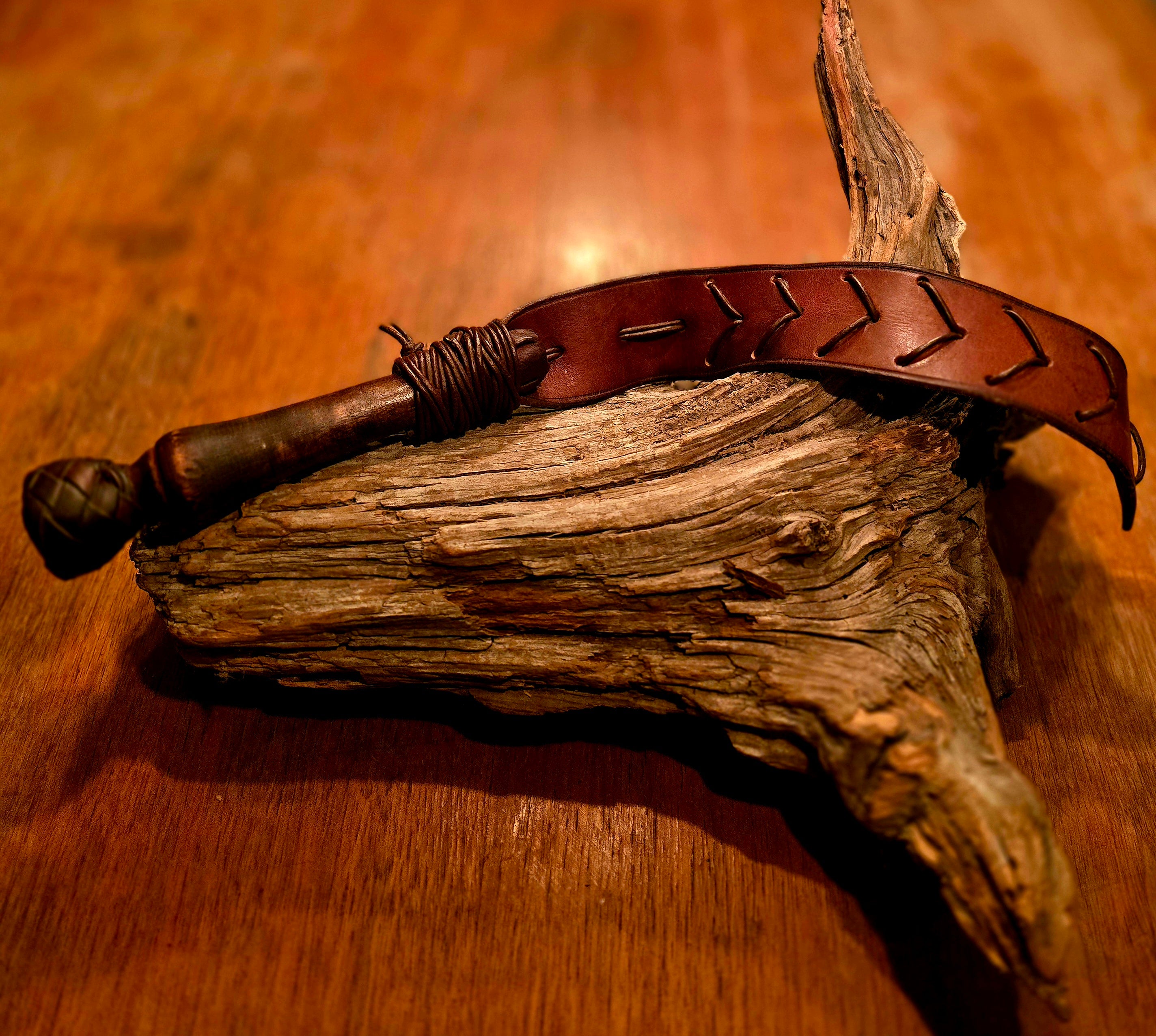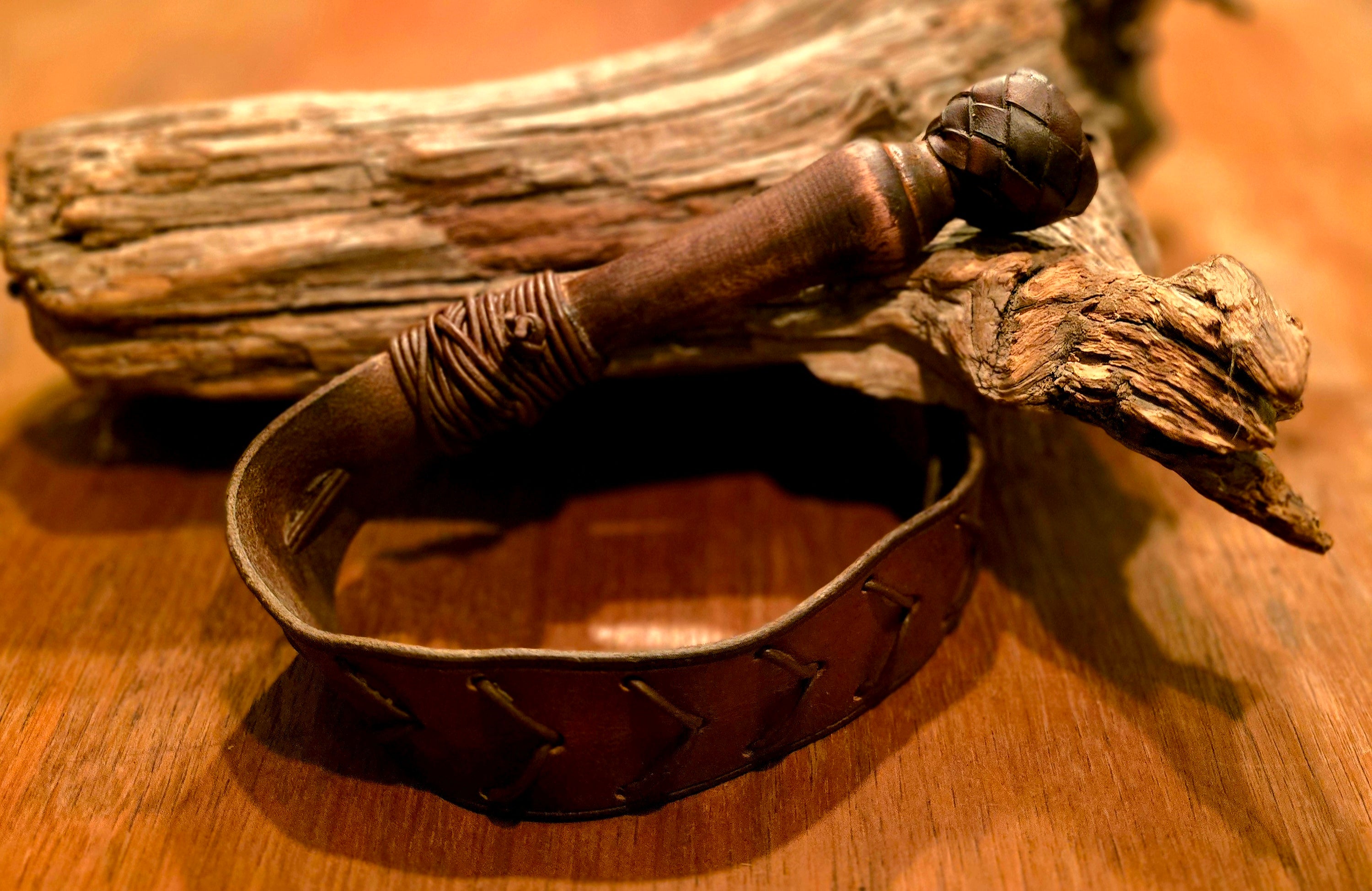 Material: handtag i trä/vegetabilgarvat koläder och svans i vegetabilgarvat koläder